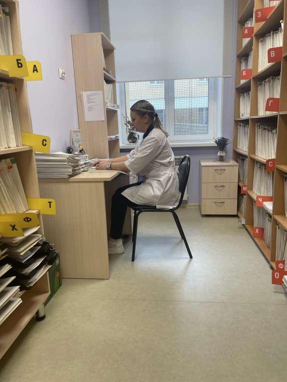 Галина Витальевна — настоящий хранитель времени в приемно-диагностическом отделении! Именно она отвечает за порядок в медицинской документации и в архиве, где собраны истории болезни пациентов за 23 года существования нашего центра.