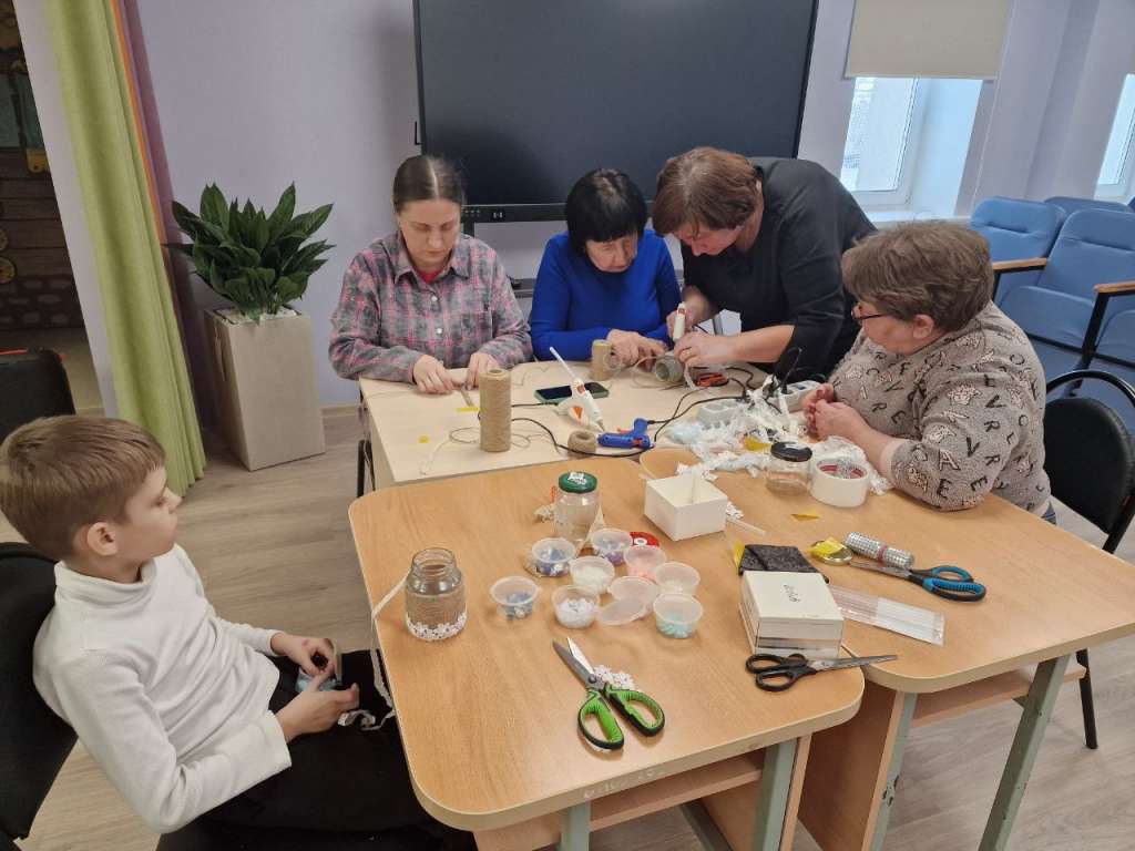 В нашем центре царила атмосфера творчества и семейного единения! Социальные педагоги Людмила Васильевна Анохина и Светлана Николаевна Кулясова провели мастер-класс по декорированию ёмкости для крещенской воды в технике джутовой филиграни. Это было погружение в мир тонких линий, изящных узоров и природной красоты! Дети, мамы и бабушки с большим энтузиазмом взялись за работу. Под руками участников из простых нитей рождались волшебные цветы и замысловатые орнаменты. Каждая работа стала отражением души своего создателя, наполненная теплом и особым смыслом.