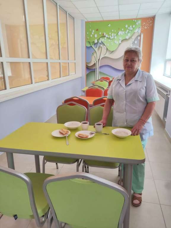 А рядышком на раздаче — заботливые помощницы. Встречают ребят с улыбкой, накладывают горячие тарелки, добавку предлагают. Вместе они — настоящая команда, которая делает всё, чтобы еда была не только вкусной, но и с душой.