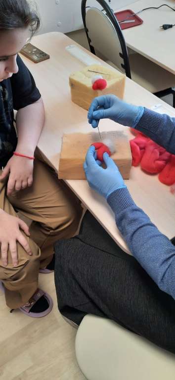 Провела его наш инструктор по труду Татьяна Викторовна. Это занятие — про особую атмосферу: тишину, умиротворение и полное погружение в процесс. Когда иголочка за иголочкой создает пушистое чудо — время будто останавливается.