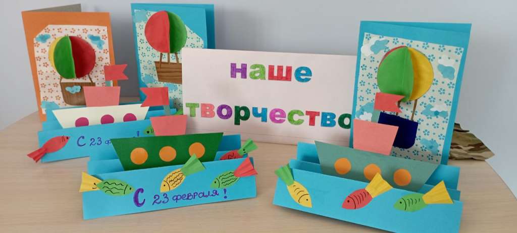 Наши воспитатели провели для ребят и их мам творческий мастер-класс. Дети мастерили открытки и поделки, чтобы поздравить любимых пап и дедушек с праздником.